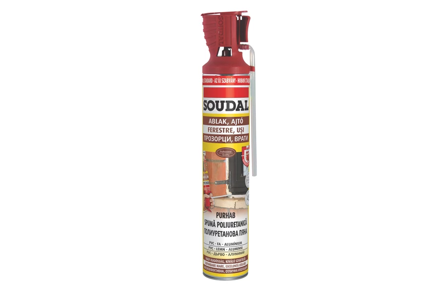 Kézi purhab Egykomponensű szerelő-tömítő poliuretán hab, nagyon jó kiadóssággal és rövid kötési idővel, egykezes, visszazárható Genius Gun adapterrel. A hab kivalóan tapad fa, PVC, alumínium, vakolat, tégla, kő és mázolt felületekhez. A termék 300 ml-es, 500 ml-es, és 750 ml-es kiszerelésben is elérhető. Alkalmazások Tömítésre ablak- és ajtókeretekhez, fa, alumínium, PVC anyagokhoz. Hangszigetelő kitöltésre, üreges vázszerkezetekhez. Hőszigetelő anyagként központi fűtés, illetve gépészeti vezetékekhez, fürdő és zuhanyzó szerelvényekhez. Építéshez és tömítéshez, párkány, küszöb, redőny, lépcső esetén. Hő- és hangszigetelő, fal, padló, födém és tető hézagokhoz. Kitöltésre fal- és födémáttörésekhez. Használati utasítások Használat előtt erősen rázzuk fel a flakont. Felhasználási hőmérséklet: +5°C és +30 °C között. Javítás a saját anyagával. Minden esetben nedvesítsük be az alapfelületet, mert javítja a tapadást, kötési gyorsaságot és a cellastruktúrát. A purhabot óvjuk az UV sugárzástól festéssel vagy vakolással. A friss hab eltávolítható Soudal Purhabtisztítóval vagy acetonnal. A kikeményedett hab csak mechanikusan távolítható el vagy Soudal PU-eltávolító termékünkkel.